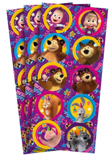 ADESIVO REDONDO MASHA E O URSO 30 UND
