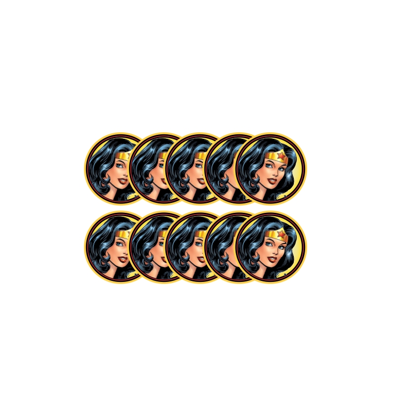 MICRO APLIQUE MULHER MARAVILHA C10 UNID MM2022 TAMANHO: 3,0CM X 3,0CM APLIQUE DECORATIVO TEMATICO IDEAL PARA DECORAR LEMBRANCINHAS, ITENS DA FESTA, BOLO FALSO, OU O QUE QUISER