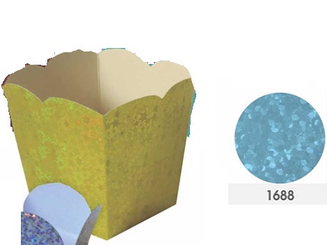 CACHEPOT HOLOGRAFICO GLITER AZUL CLARO COMPOSICAO: PAPEL IMPONA 225G E PIGMENTOS ATOXICOS CARACTERISTICAS: CODIGO 1688 CACHEPOT PARA DOCES MATERIAL: PAPEL CARTAO, POLIPROPILENO (PLASTIFICACAO) E LAMINADO COLORIDO TAMANHO APROXIMADO: COMPR 8,5CM...