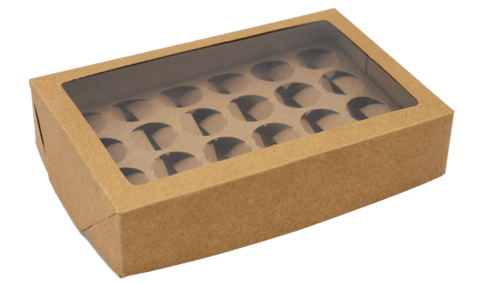 CAIXA PARA 24 BRIGADEIROS COM BERÇO E VISOR KRAFT