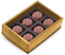 CAIXA PARA 6 BOMBONS OURO TAMPA DE ACETATO