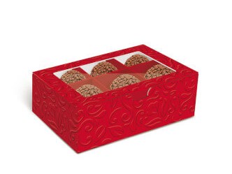 CAIXA PARA 6 BOMBONS RELEVO VERMELHO