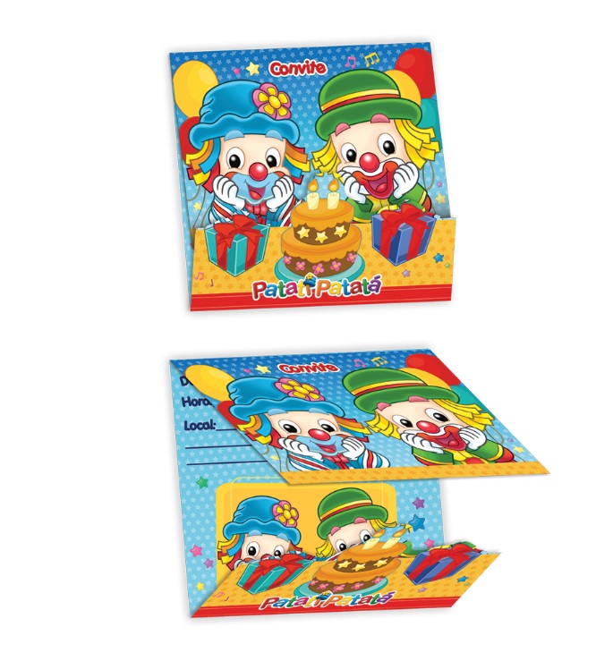 CONVITE DE ANIVERSARIO PATATI PATATA CONVITE DE ANIVERSARIO DO TEMA PATATI PATATA COM 8 UNIDADES, ILUSTRADO EM CORES VIVAS COMPRE AGORA! E LEVE OS MELHORES ARTIGOS PARA DECORACAO DE FESTA INFANTIL PATATI PATATA DIVERSAO GARANTIDA! CARACTERISTICA: ...
