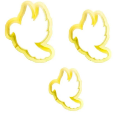 CORTADOR POMBA DA PAZ CODIGO: 406672 FACA LINDAS DECORACOES DE BATIZADO COM OS CORTADORES POMBA DA PAZ DA BLUESTAR UMA EMBALAGEM CONTEM 03 CORTADORES EM TAMANHOS DIFERENTES, IDEAIS PARA TRABALHAR COM PASTA AMERICANA E BISCUIT CRIE TOPOS E APLIQUES...