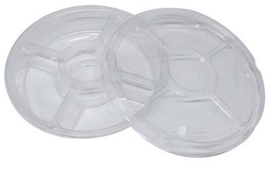 PETISQUEIRA DESCARTAVEL COM TAMPA 5 DIVISOES G540 LINDA PETISQUEIRA MULTIUSO, MUITO PRATICA E RESISTENTE, ACOMPANHA TAMPA TRANSPARENTE, COM TRAVAS QUE A FIXAM NA BANDEJA NA TRANSPARENTE , PROPORCIONANDO UM TRANSPORTE SEGURO E MAIOR PROTECAO DOS ALIMENTOS, UMA EXCELENTE ESCOLHA PARA LEVAR A MESA! DICAS DE UTILIZACAO: SALGADINHOS, CASTANHAS, FRUTAS SECAS, SEMENTES, PATES, FRIOS, AZEITONAS, DOCINHOS, ETC CARACTERISTICAS MATERIAL: PLASTICO PET COLORACAO: CRISTAL FORMATO: REDONDA DIMENSAO EXTERNO: 198MM DIAMETRO X 40MM ALTURA GALVANOTEK