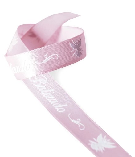 FITA DE CETIM N 3 FACE SIMPLES, COM 15MM DE LARGURA E 10M DE COMPRIMENTO, INDICADA PARA TRABALHOS ARTESANAIS, LACOS, EMBRULHOS DE PRESENTE E TRABALHOS MANUAIS EM GERAL FITA CETIM ROSA BEBE ESTAMPADO COM O TEMA BATIZADO NA COR BRANCA CODIGO:...