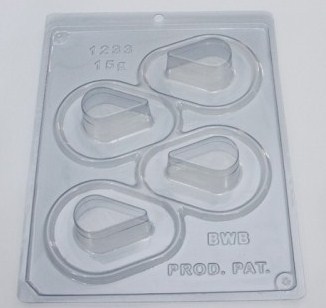 FORMA COM 4 CAVIDADES MATERIAL: ACETATO E SILICONE COMPOSICAO: PET E PE PRODUTO ATOXICO DIMENSOES CAVIDADE: 5 X 3 X 2,5 CM (COMPRIMENTO X LARGURA X ALTURA) REUTILIZAVEL PESO APROXIMADO DA CASQUINHA PRONTA: 15 GR