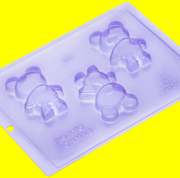 FORMA DE ACETATO COM SILICONE IDEAL PARA A PRODUCAO DE LINDOS URSINHOS DE CHOCOLATE PERFEITO PARA DAR O TOQUE ESPECIAL EM SUAS FESTAS; PARA VENDA; E ATE PRODUCAO DE LEMBRANCINHAS INFORMACOES ADICIONAIS DIMENSOES APROXIMADAS DO PRODUTO: COMPRIMENTO: 8,1CM X LARGURA: 5,2CM X ALTURA: 2CM PESO DA CASQUINHA: 20G PESO MEDIO RECHEADO: 58G QUANTIDADE: 1 FORMA COMPOSTA POR 3 PARTES; SENDO 2 DE ACETATO E 1 DE SILICONE COMPOSICAO: 100% POLITEREFTALATO DE ELILENO (PET)(PE)