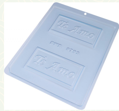 FORMA SIMPLES, IDEAL PARA PRODUCAO DE CHOCOLATES COM MUITA PRATICIDADE CAVIDADES: 2 DIMENSOES (MM): COMP: 118 X LARG: 60 X ALT: 6 PESO MEDIO: 40G