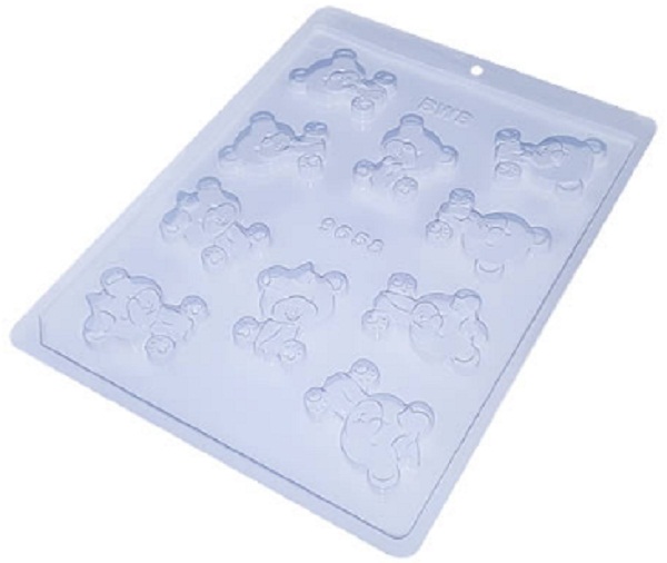 FORMA DE ACETATO FORMA DE ACETATO IDEAL PARA A PRODUCAO DE LINDOS CHOCOLATES DECORATIVOS EM FORMATO DE URSINHOS PARA CHA REVELACAO; PARA DECORAR SUAS FESTAS E FAZER LEMBRANCINHAS INFORMACOES ADICIONAIS DIMENSOES APROXIMADAS DO PRODUTO: LARGURA: 3,8CM X ALTURA: 5CM QUANTIDADE DE CAVIDADES: 10 CAVIDADES MATERIAL: PET E PIGMENTO