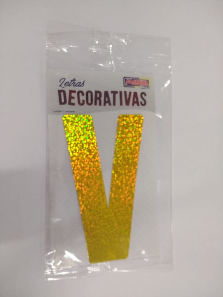 LETRA HOLOGRÁFICA DECORATIVA DOURADO V