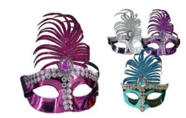 MÁSCARA DECORADA COM PEDRA E RABO DE GALO PA0063-3