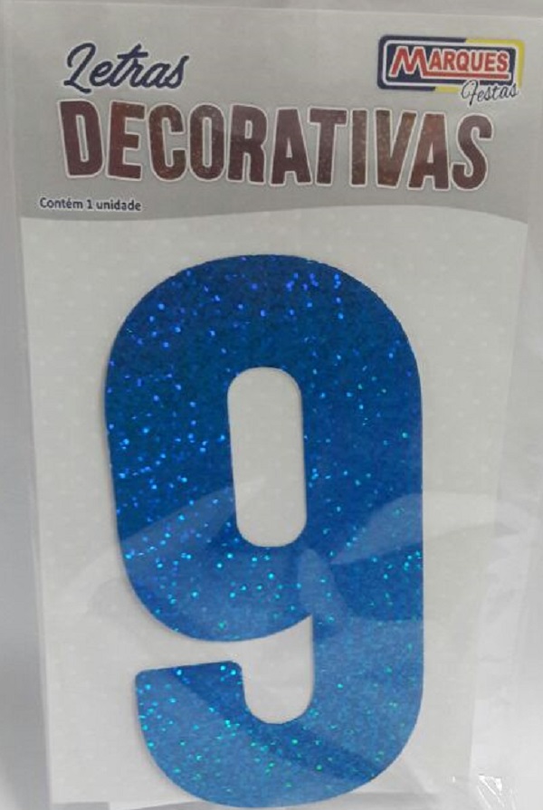 NÚMERO HOLOGRÁFICO DECORATIVO AZUL 9