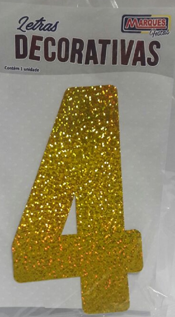 NÚMERO HOLOGRÁFICO DECORATIVO DOURADO 4