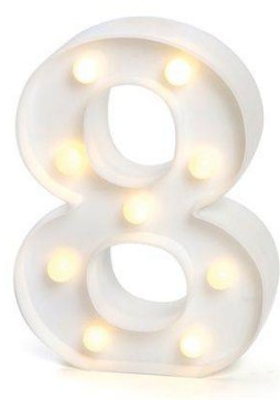 NÚMERO LUMINOSO DE LED 8 DECORAÇÃO A PILHA BRANCO 22CM