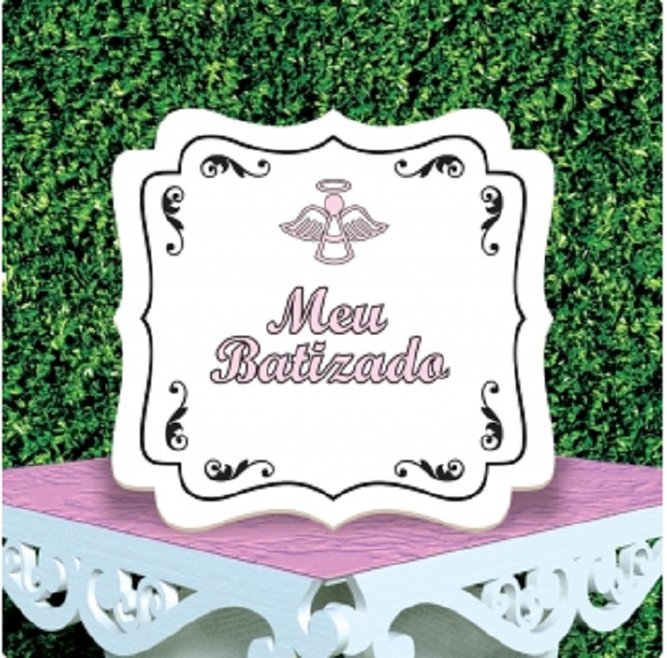 PLACA MEU BATIZADO ROSA DC0025 TAMANHO: 19,5CM X 18,5CM