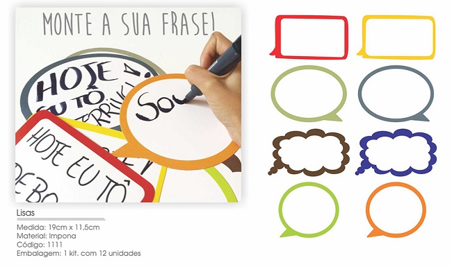 MEDIDA: 19X11,5CM MATERIAL: LIMPONA CODIGO: 1111 SAO 08 PLAQUINHAS PARA FESTA, CADA UMA CONTEM UM BALAO QUE VOCE MESMO PREENCHE COM FRASES BRINCALHONA E BEM ILUSTRADA, COLORIDAS DE VARIOS FORMATOS TODOS ESSES ELEMENTOS GARANTEM TIRAR SEFIES CRIATIVAS PARA OS CONVIDADOS POSTAREM EM SUAS REDES SOCIAIS O MATERIAL E FEITO DE PAPEL CARTONADO DE QUALIDADE E RECORTADOS EM FORMATOS DE BALOES DE DIALOGOS EVENTOS INDICADOS: COMBINAM MUITO BEM COM FESTA DE ANIVERSARIO, FORMATURA, CASAMENTO, FESTA UNIVERSITARIA E BALADA