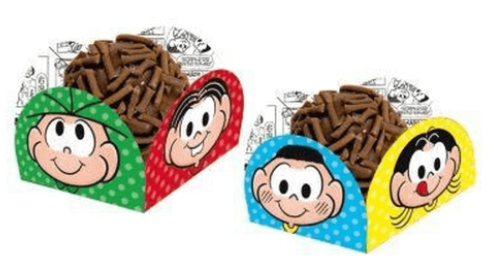 PORTA FORMINHA TURMA DA MONICA FORMINHA PARA DOCES COM TEMA TURMA DA MONICA IDEAL PARA COMPOR COM A DECORACAO QUADRINHOS DE SUA FESTA PACOTE COM 40 TAMANHO: 4CM X 3CM MATERIAL: PAPEL
