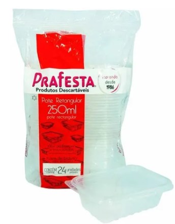 POTE DESCARTÁVEL RETANGULAR PP COM TAMPA 250 ML 24 UND