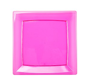 PRATO ACRILÍCO QUADRADO DESCARTÁVEL 15 CM ROSA 10 UND