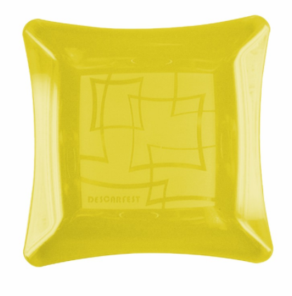 PRATO ACRILÍCO QUADRADO DESCARTÁVEL 21 CM AMARELO 10 UND