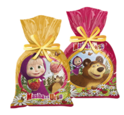 SACOLA SURPRESA PLÁSTICA MASHA E O URSO 12 UND