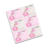 ETIQUETA PARA LEMBRANCINHA CHA DE BEBE ELEFANTINHO ROSA MATERIAL: PAPEL OFFSET E PIGMENTOS ATOXICOS COR: CONFORME FOTO DO PRODUTO CONTEM 48 UNIDADES NA EMBALAGEM TAMANHO: 4,5CM X 3,5CM