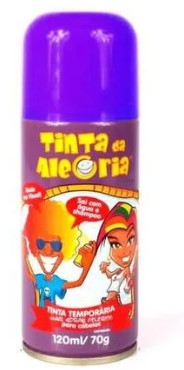 REFERENCIA: BR287RX A TINTA DA ALEGRIA DEIXA SEUS CABELOS COLORIDOS E PARA RETIRALA BASTA LAVALOS COM AGUA E SHAMPOO ELA PODE SER UTILIZADA EM DIVERSAS OCASIOES COMO: FESTAS, COMEMORACOES ESPORTIVAS, CARNAVAL ETC MODO DE USAR: AGITE BEM A EMBALAGEM ANTES E DURANTE O USO APLIQUE O PRODUTO SEGURANDO A LATA NA POSICAO VERTICAL A 20 CM DO CABELO VOLUME DO SPRAY: 120 ML70G PRODUTO NAO CONTEM CFC PESO TOTAL: 0,133 KG