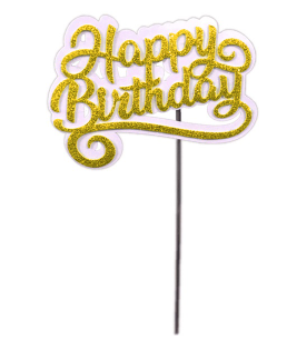 TOPO DE BOLO HAPPY BIRTHDAY GLITER DOURADO EM EVA UND