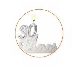 VELA ANIVERSÁRIO 30 ANOS BRANCA GLITER PRATA