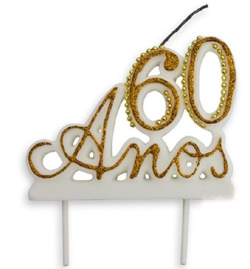 VELA ANIVERSÁRIO 60 ANOS BRANCA E DOURADA