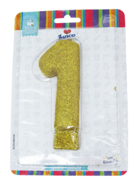 VELA ANIVERSARIO GIGANTE GLITER DOURADA N1 1 UNIDADE VELA DE ANIVERSARIO NO FORMATO DO NUMERO 1 COM GLITTER DOURADO A VELA TEM 12,5CM DE ALTURA X 6,5CM DE LARGURA COMPOSICAO: PARAFINA, PLASTICO, FIO DE ALGODAO E PIGMENTOS ATOXICOS