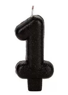 NA HORA DO PARABENS A VELA NAO PODE FALTAR, E A LILI FESTEIRA TEM PARA TODOS OS GOSTOS! ESPECIFICACOES VELA PRETA GLITTER NUMERO 1 CONTEM: 01 UNIDADE MATERIAL: PARAFINA TAMANHO: 12 X 9CM