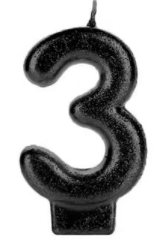 VELA ANIVERSÁRIO Nº 3 GLITER PRETA