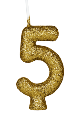 VELA ANIVERSÁRIO Nº 5 GLITER DOURADA