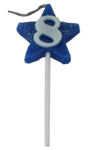 VELA ANIVERSÁRIO Nº 8 ESTRELAR AZUL COM GLITER