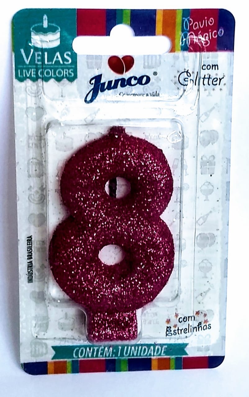 VELA ANIVERSÁRIO Nº 8 GLITER PINK